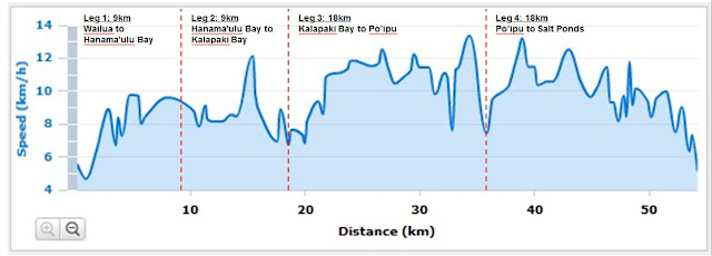Finally had the opportunity to download my GPS data for the Kauai Challenge Relay! 54km of tough conditions, spectacular landings and great surfing. Check out the earlier posting below for our race report